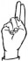 На ћирилици написано ДРАГОМАН КЛИНЦОВ састоји се из 15 слова [?]. Исписано ћириличном једноручном азбуком за глувонеме: